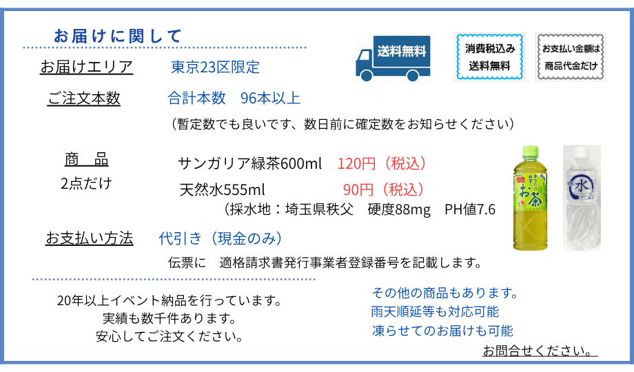 セミナー イベント 運動会 日時指定で 冷やしたお茶・お水を配達します。