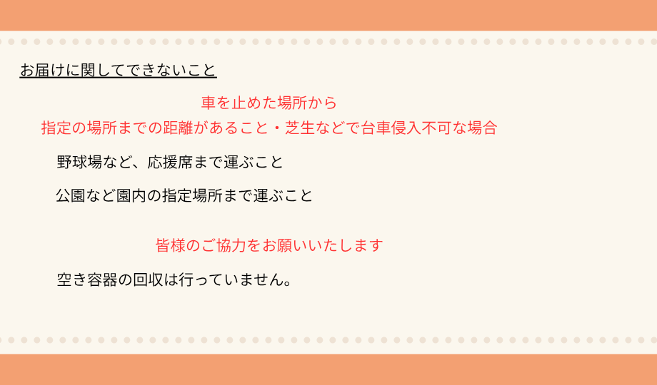 運動会などのアウトドアイベント、中止や雨天順延などはお問合せください。